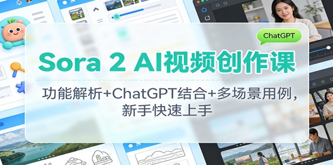 本课程是Sora2 AI视频生成的系统教程(英文版),从基础功能讲解到高级创作应用全面覆盖。课程涵盖Sora2新功能解析、与ChatGPT的协同创作、水印去除、视效增强等核心技能,通过9个初学者用例与28个进阶创意案例,手把手教学员掌握从基础操作到专业级AI视频制作的完整